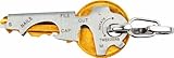 9つの機能、ナイフ、プラスドライバー、マイナスドライバー、やすり、コルク抜き、栓抜き、ハサミ、缶切り、キーリングが収まったマルチツール。