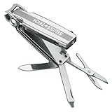 6つの機能、ナイフ、マイナストライバー、爪切り、爪ヤスリ、はさみ、LEDライトが収まったクリップ型のマルチツール。