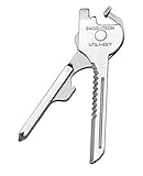6つの機能、ナイフ、波刃ナイフ、プラスドライバー、マイナスドライバー、精密ドライバー、栓抜きが収まった鍵型のマルチツール。